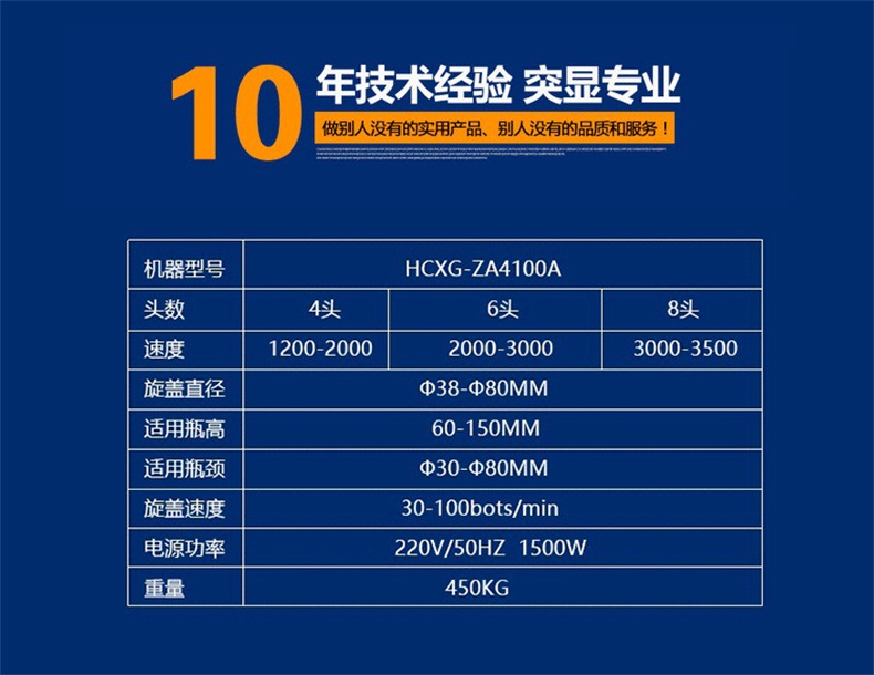 6.旋蓋機構(gòu)高度可快速調(diào)節(jié),可適用相同口徑、不同高度的瓶子旋蓋;更換部分零件即可實現(xiàn)不同瓶徑、不同口徑的旋蓋,更換快捷方便。