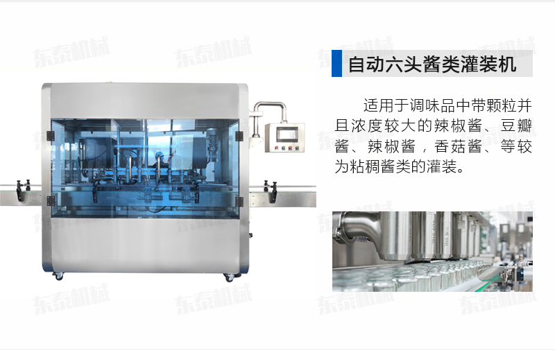 該醬體灌裝機(jī)生產(chǎn)線采用活塞式氣缸驅(qū)動(dòng)原理,適用于調(diào)味品中帶顆粒并且濃度較大的辣椒醬、豆瓣醬、辣椒醬,香菇醬、等較為粘稠醬類的灌裝。灌裝轉(zhuǎn)閥可以根據(jù)客戶物料定做加大,以適應(yīng)不同客戶物料的灌裝需求。配備臥式攪拌料斗,大限度的保障在灌裝過(guò)程中物料均勻、無(wú)油醬分離。該設(shè)備在設(shè)計(jì)上大大縮短了下料斗到灌裝頭的灌裝距離,克服了含油量大的物料(如:含芝麻粒的辣椒油)在灌裝過(guò)程中出現(xiàn)的有些瓶油多,有些瓶醬多的灌裝誤差大的缺點(diǎn)。