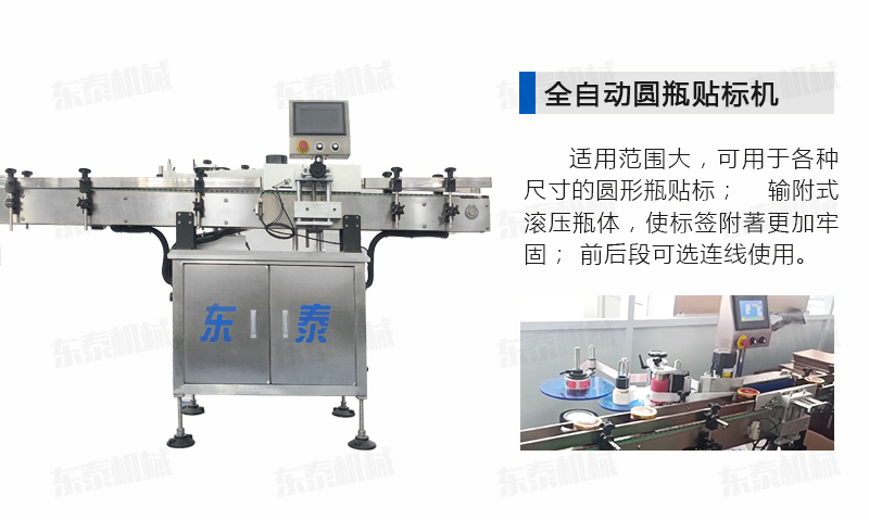 全機(jī)采用的技術(shù):微電腦-PLC-電子光纖傳感器控制系統(tǒng),使整機(jī)運(yùn)行穩(wěn)定、高速; 操作系統(tǒng)采用操作界面控制,操作簡(jiǎn)便、實(shí)用、效率高,并有產(chǎn)量記數(shù)功能; 技術(shù)的速度快且穩(wěn)定; 適用范圍大,可用于各種尺寸的圓形瓶貼標(biāo); 輸附式滾壓瓶體,使標(biāo)簽附著更加牢固; 前后段可選連線使用。